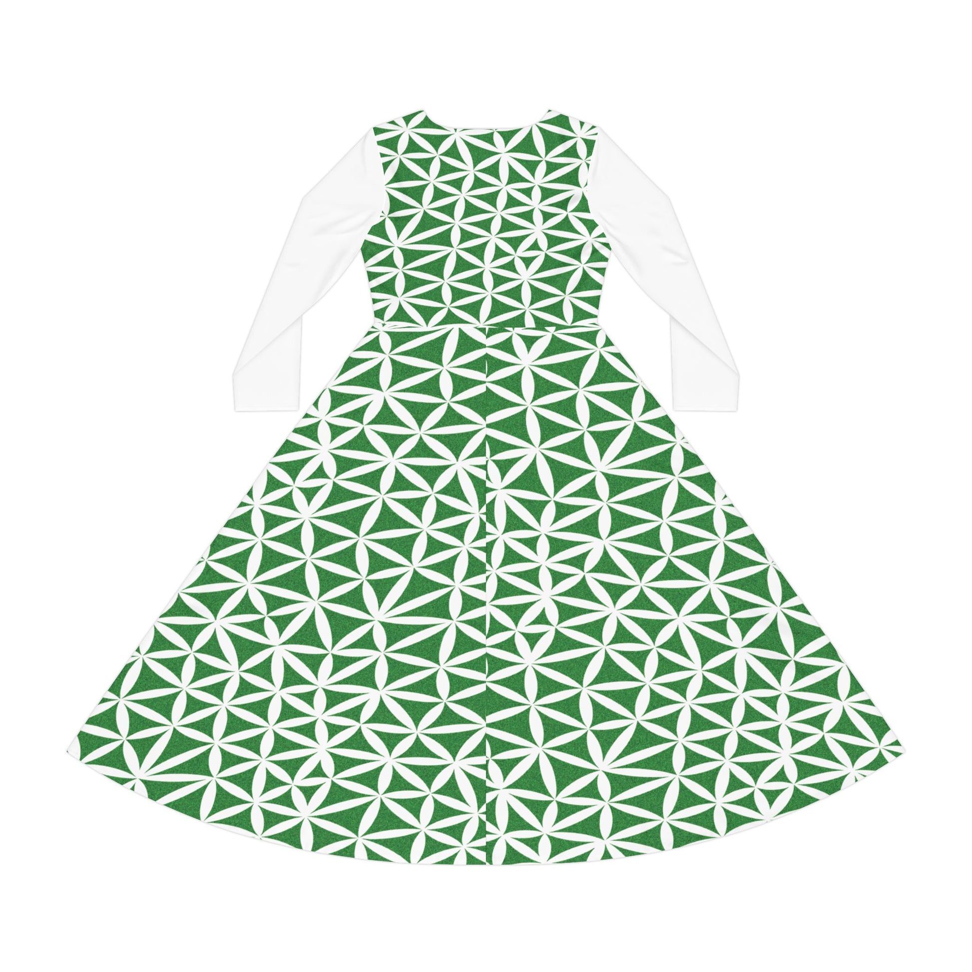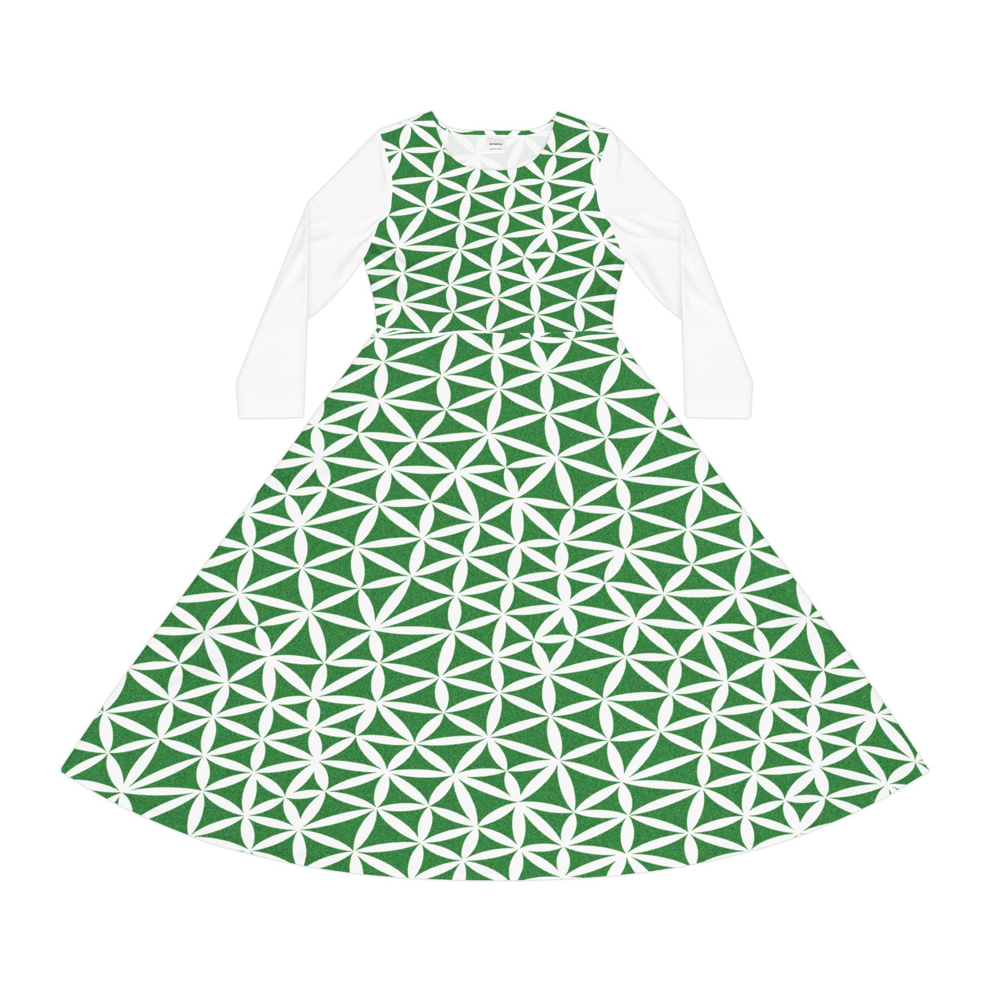 The svrf traingle dress is a beautiful and stylish long sleeve dress that combines style and comfort. Regular fit for easy movement, it is also super easy to dry and clean. With a wonderful mid-century green sail pattern, this dress gives off a trendy and chic vibe, perfect for a day at the beach or a casual outing. Ideal for women who love to stand out and make a statement with their fashion choices. Relevant for beach vacations, summer parties, and casual gatherings.
